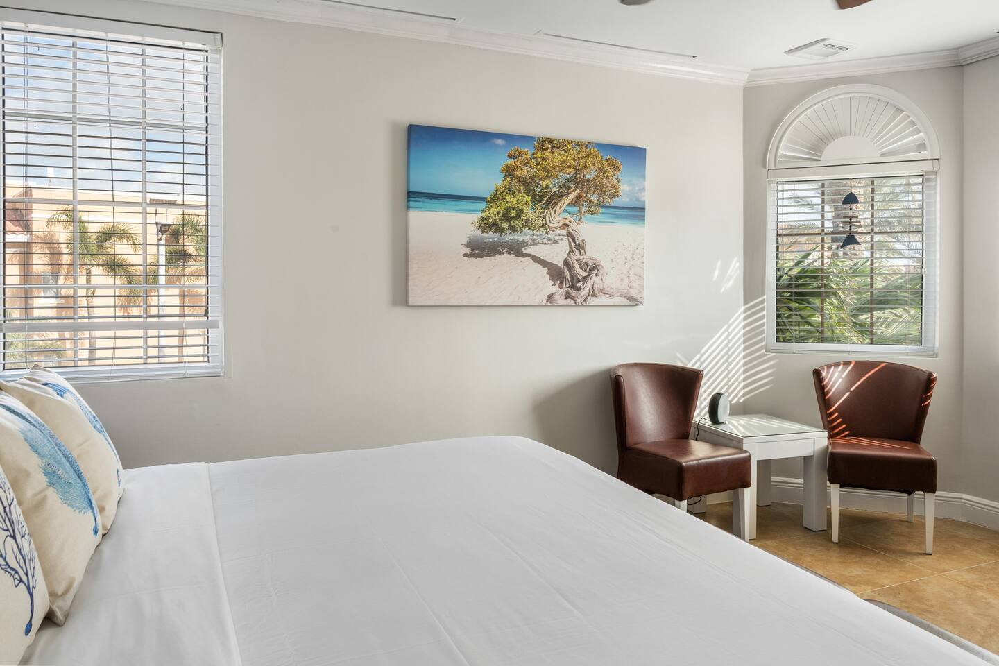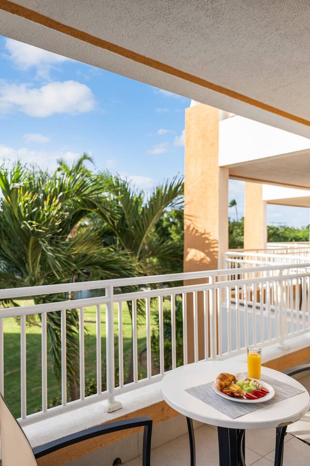 Welcome to your tropical home away from home! This spacious 2-bedroom suite offers all the comforts and convenience you need for a relaxing vacation or productive remote work retreat—just steps from Aruba’s most beautiful beach. 🛏️ Sleeping Arrangements • 2 private bedrooms with king-size beds and ensuite bathrooms • 1 queen-size sofa bed in the large living room • 3 full bathrooms for added privacy and comfort • Sleeps up to 6 adults very comfortably 🍳 Living & Kitchen • Fully equipped kitchen for easy home-style cooking • Large living area with comfortable seating • 4-seat dining table perfect for meals or working remotely • Access to a large private balcony with outdoor seating 🌺 Outdoor Surroundings • Peaceful views of the Divi Golf Course and lush ravine • Quiet atmosphere, ideal for morning coffee or evening relaxation • Serene, tropical setting for a restful getaway 🏖️ Beach & Resort Perks • 10-minute walk to world-renowned Eagle Beach • Access to private beach kiosks and loungers (first come, first serve) • Small cooler provided for your drinks (no glass allowed at beach or pools) • Close to resort cafés, restaurants, and nearby dining options • 💳 Payment Tip: Most restaurants accept both cash and credit cards, but many bars are card-only and will not accept cash — be sure to bring a card when heading out! 💪 Resort Amenities Included • 4 swimming pools • Kids poll with Slide • Fully equipped gym • Tennis courts • Clubhouse with on-site restaurants • Access to Divi Golf Course (golf fee required; check in with front staff) 🧺 Housekeeping & Guest Services • Complimentary daily towel changes and garbage removal (opt out anytime) • Optional cleaning service available at $65 per session (please notify at least 1 day in advance) • Start-up guest supplies provided and restocked weekly or with optional cleaning service • Beach towels provided via towel card system—return and exchange as needed 📶 Connectivity & Convenience • Free Wi-Fi throughout the unit • Ideal setup for remote work or extended stays 📌 Important Note Please **notify us in advance** of any changes to your reservation or arrival time. We're always happy to help ensure your stay is smooth and stress-free. ✨ Whether you're visiting Aruba to unwind, explore, or simply enjoy beachfront living with top-tier resort amenities, this 2-bedroom condo has everything you need for an unforgettable stay in paradise.